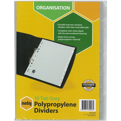 Marbig Plastic Divider A4 10 Insert Tab Grey