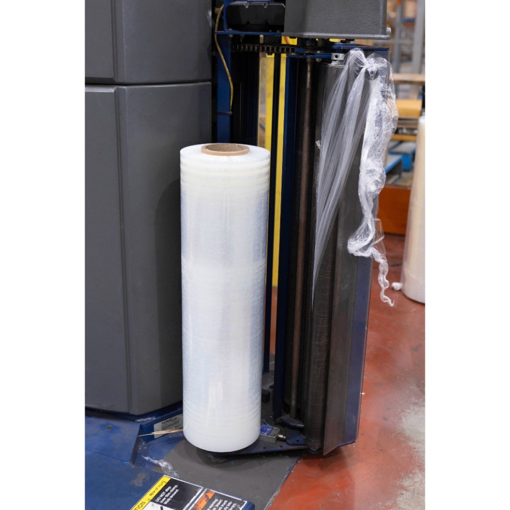 Blown film provides superior puncture resistance and durability. High level of cling for easy securing of the load. Secures and stabilises cartons or products ready for storage or shipping. Larger rolls for use in pallet wrap machines.