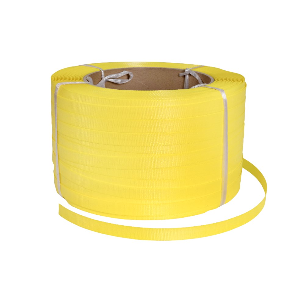 Strapping: 19mm wide x 0.5mm thick. Length: 700m. For manual hand strapping. Break load 180kg.
