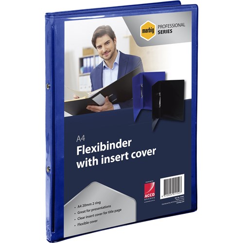 Marbig Professional Series Flexibinder Clear Insert Cover A4 2 Ring 20mm Royal Blue
