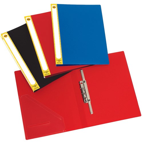 Long lever holds documents in place without the need for hole punching. With clear pocket on inside front cover to hold loose items. Insert spine label to personalise your file. Holds up to 60 sheets of 80gsm paper.