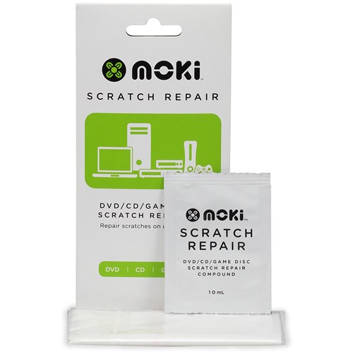 • Help keep your discs in working order with Moki Scratch Repair. Suitable for use with DVDs and CDs, this specially formulated compound cleans and repairs up to 10 scratched discs that skip, stop or refuse to play.Note: Scratches will still be visible after