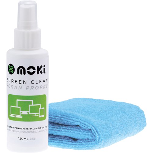 Moki Screen Cleaning Spray 120ml with 30x30cm Microfibre Cloth