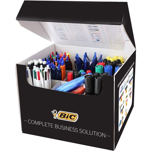 New Bic All In One 111 Piece Business Writing Solution Box. Convenient, Affordable And Saves Time The Box Contains 111 Pieces, Including Bic Cristal Ballpens X 20, Bic Cristal Multi-Colour Ballpens X 10, Bic 4 Colour Multi-Function Pens X 12, Bic Atlantis Retractable Pens X 12, Bic Mark-It Permanent Markers X 7, Bic Marking 2000 Permanent Markers X 5, Product Codes Included On The Inside For Easy Re-Order
