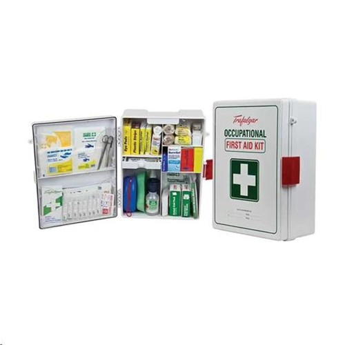 Designed in accordance with Safe Work Australia, First Aid in the Workplace Code of Practice and complies with most state regulatory requirements.Easy to identify colour coded products. 50 x Adhesive First Aid Strips 1 x Adhesive Paper Tape - 2.5cm x 5m 10 x Alcohol Wipes 1 x Antiseptic Spray 100ml 1 x Bag - Biohazard 2 x Bag - Resealable (Small) 2 x Bag - Resealable (Medium) 2 x Bag - Resealable (Large) 1 x Bandage - Conforming 5cm x 1.8m 1 x Bandage - Triangular 110cm x 110cm x155cm 2 x Bandage - Crepe Medium Support 10cm x 2m 2 x Bandage - Triangular 110cm x 110cm x 155cm 10 x Burn Relief Gel 3.5g 100 x Cotton Tips 1 x CPR Mask in Hard Case 1 x CPR Pocket Card 1 x Dressing - Combine 10cm x 20cm 6 x Dressing - Non Adherent 5cm x 5cm 3 x Dressing - Non Adherent 7.5cm x 10cm 1 x Dressing - Non Adherent 10cm x 10cm 1 x Dressing - Burn 70cm x 75cm 1 x Dressing - Wound No.13 (Small) 1 x Dressing - Wound No.14 (Medium) 1 x Dressing - Wound No.15 (Large) 5 x Eye Dressing Pad 1 x Eye Wash 100ml 1 x First Aid Guide 1 x Gallipot - Disposable 3 x Gauze Swab 7.5cm x 7.5cm (5pcs) 5 x Gloves – Nitrile (Pair) 1 x Instant Cold Pack - Small 1 x Kidney Dish 1 x Register Of Injuries Book and Pencil 12 x Safety Pins - Assorted 8 x Saline Pods 20ml 1 x Scissors 10 x Splinter Probe – Disposable 1 x Thermal Rescue Blanket 1 x Tweezers 10 x Wound Wipes