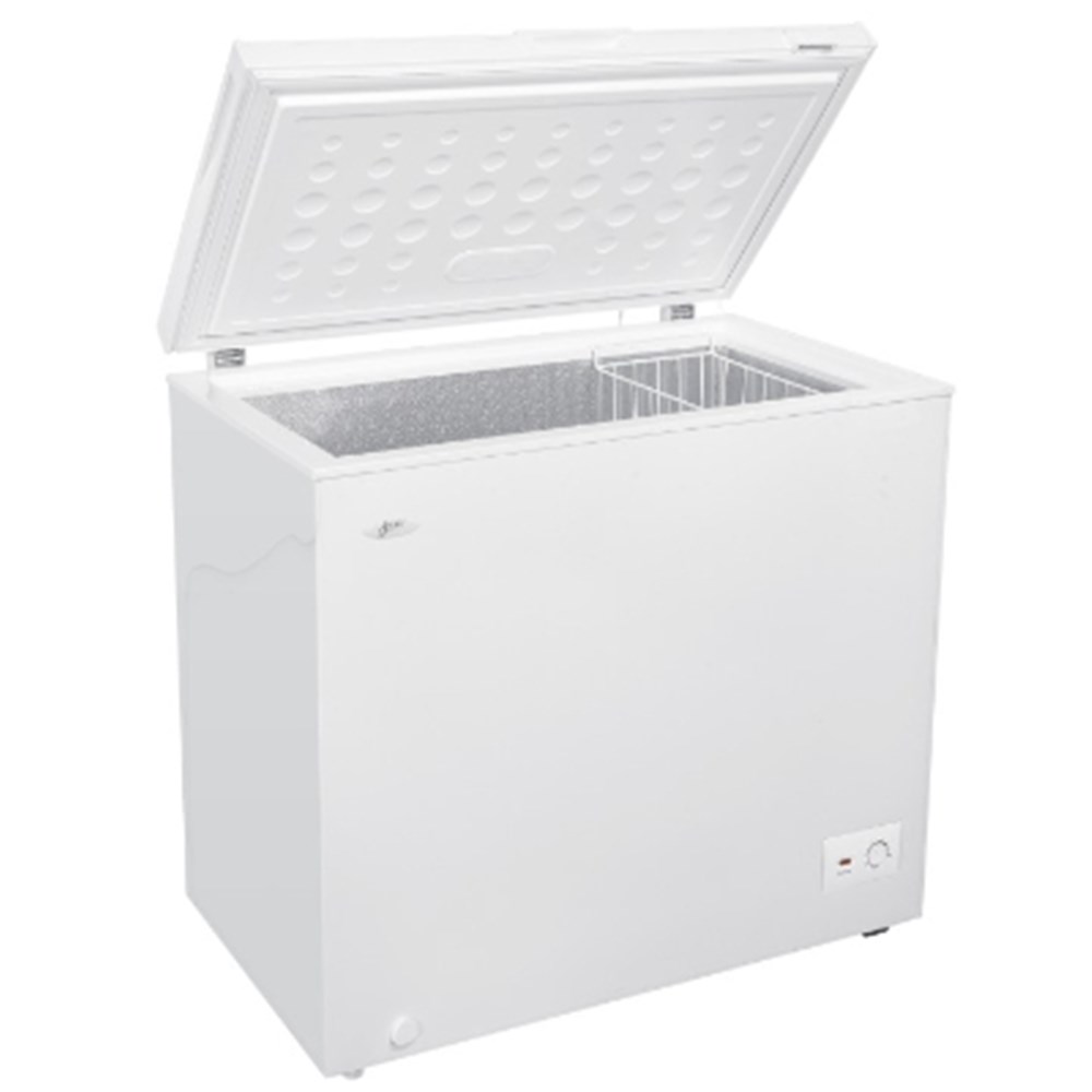 Compressor style chest freezer. Simple thermostat controls. Sliding removable basket. Adjustable feet. Dimensions: 905W x 545D x 845mmH. GEMS: 3 Star Rating. Capacity: 198 litres. US/NZ Electrical Safety Standards Approved. 2 Year Manufacturer's Warranty.