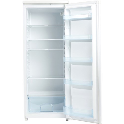 Compressor style 240 litre fridge with no freezer. Temperature range 0 degrees Celsius to +7 degrees Celsius. Reversible door. Interior Light. Glass shelves with crisper and three full width door racks. Flat back and adjustable feet. Dimensions: 550W x 560D x 1420mmH. Star energy rating: 4.5. AUS/NZ Electrical Safety Standards approved. 2 Year Manufacturer's Warranty. Delivery charges may apply, please enquire to confirm.