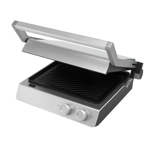 Adjustable-height locking mechanism. Raised ridges grill plate for grill marks. Fully adjustable temperature dial. 30 minutes countdown timer dial. Non-stick removable hot plates. Opens fully for 2 cooking plates. Dishwasher safe hot plates. Indicator cooking lights and drip tray. AUS/NZ Electrical Safety Standards Approved. Ceramic glass covered lid. Non-stick turner included. Now with EPS free packaging. Dimensions: 360L x 350W x 200mmH. 1 Year Manufacturer's Warranty.