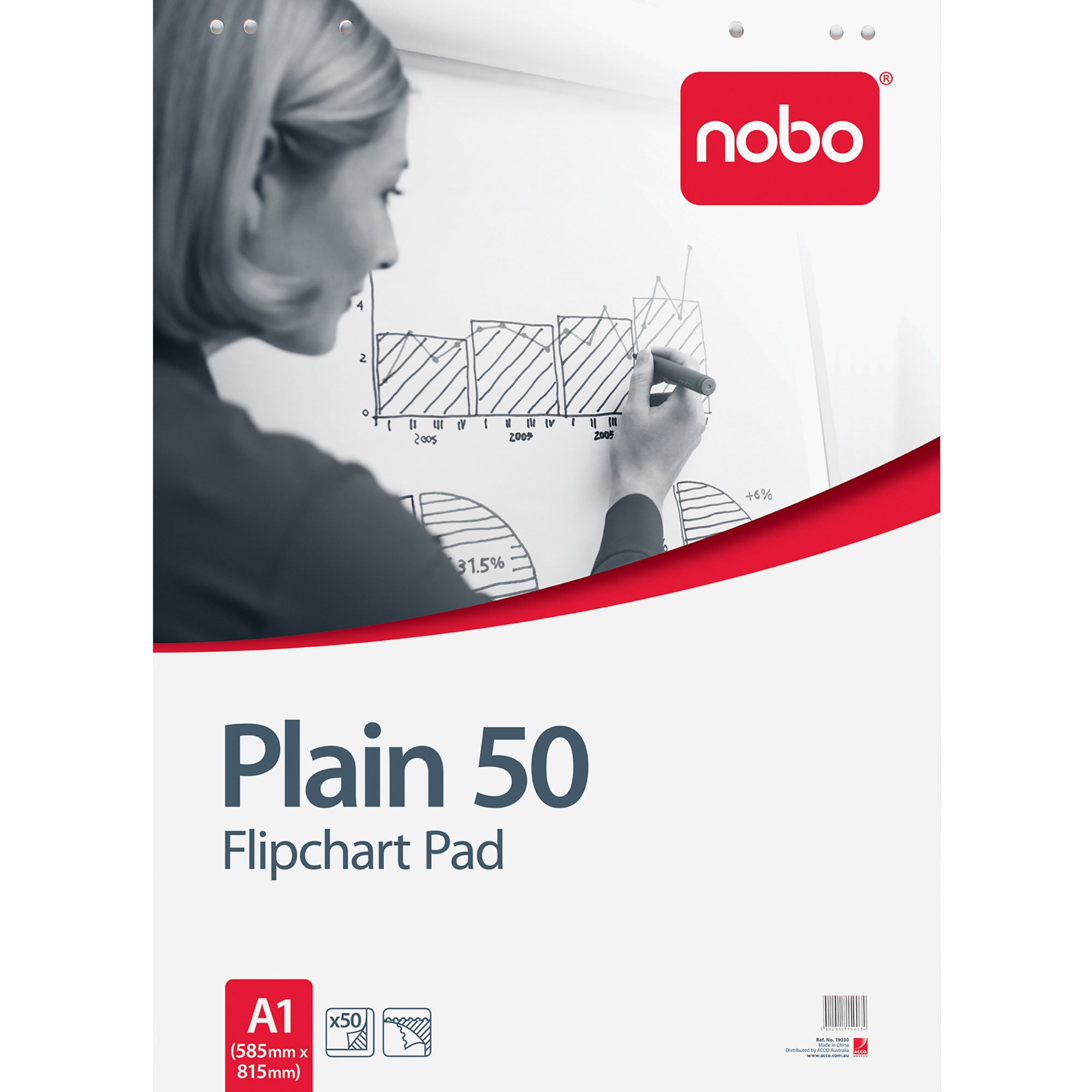 Contains 50 perforated full white, non-bleed sheets in large A1 size for easels. Holes punched to fit standard easels. Paper will not allow marker bleeding. Housed in protective polybag for easy warehousing and storage.