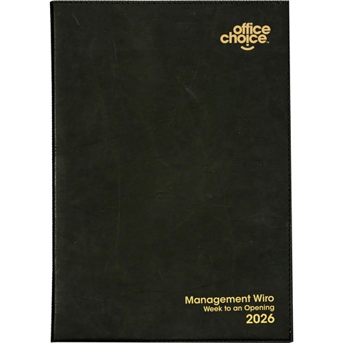 Flexible PVC cover management wiro diary, stitched edges and deluxe pocket inside the cover. Twin wiro allows you to lay the diary flat on your desk. Includes Australian and New Zealand holidays and school terms. Reference calendars. World holidays. 1 hour appointment times 7:00am - 8:00pm. Conversion table. International and National dialling codes. Weights and measures table. International paper sizes. Staff leave. Monthly expenses. Current planner.