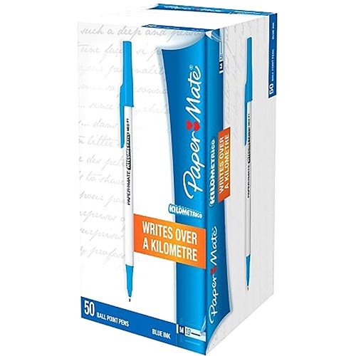 Papermate Kilometrico Ballpoint Pen Medium 1mm Blue Box of 50