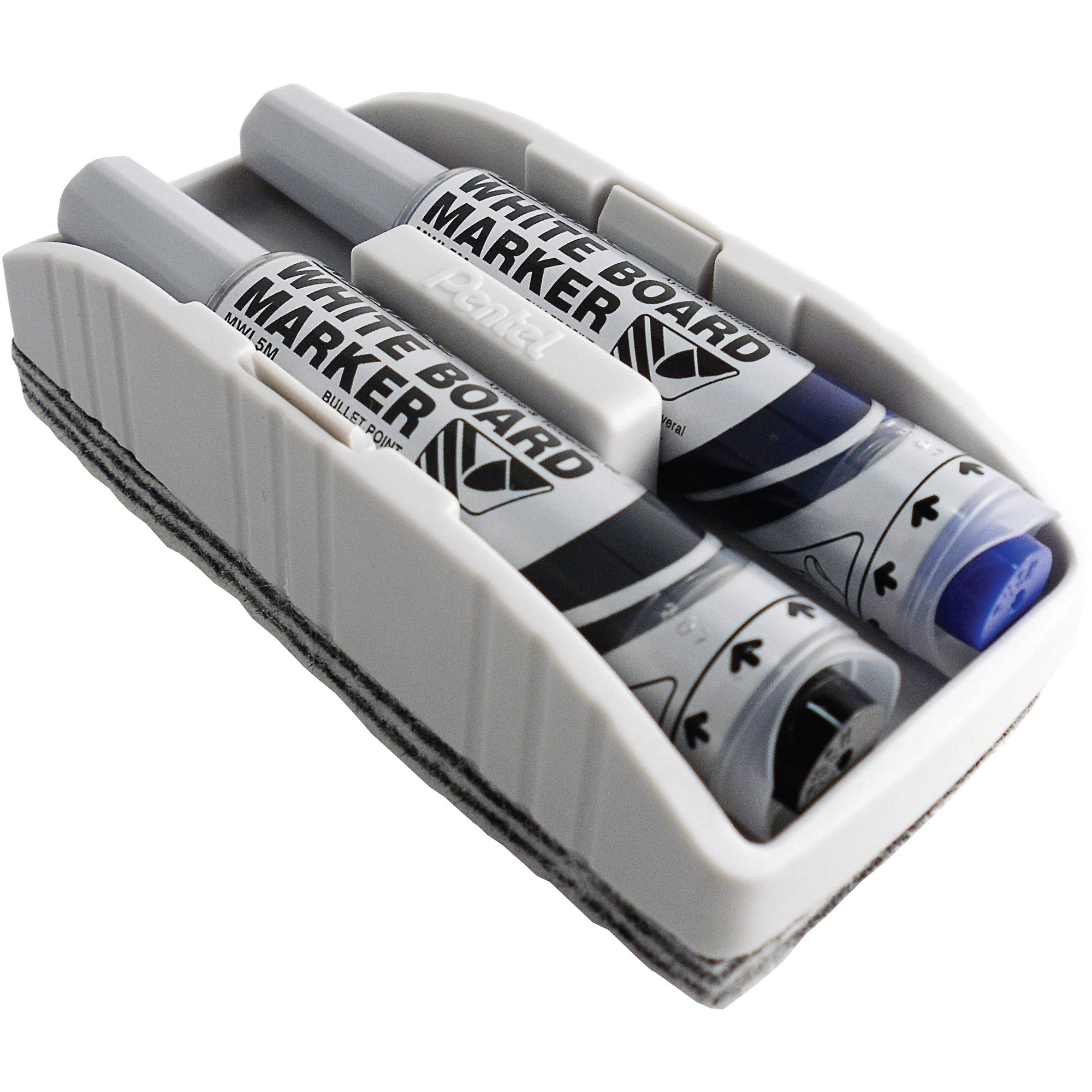 Pentel MWLC Maxiflo Whiteboard Eraser Marker Set Pump It Black & Blue Pack of 2