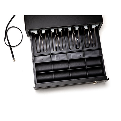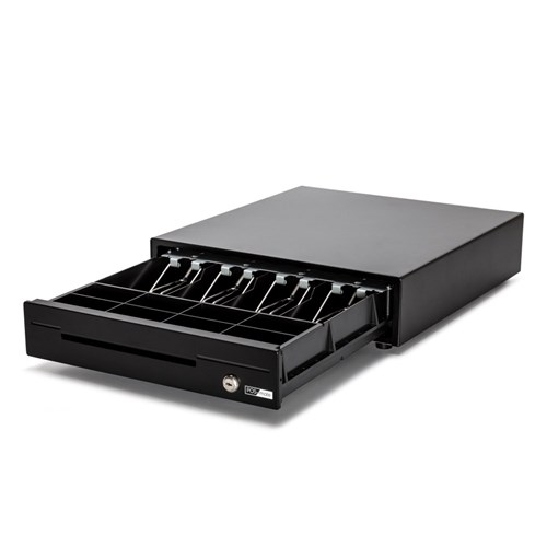 Works with 24v receipt printers. The cash drawer comes with a 1 metre cable to connect your receipt printer. There are 4 note holders, 8 coin trays and a cheque slot for organising currency. It has a durable steel casing. There is a 3-position lock for added security, with 2 keys included. It is colour matched with under counter brackets. The dimensions are 330W x 360D x 90mmH with 80mm cash drawer and 10 mm feet. The cash drawer is a classic black colour. 1 Year Manufacturer's Warranty.
