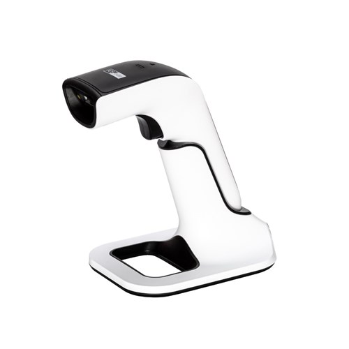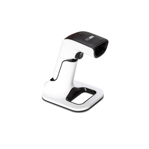 This scanner can be used with both standard barcodes and QR codes on printed surfaces and screens. It connects via Bluetooth or with USB dongle. It's compatible with Square for iPadOS and Square Stand. Not compatible with Square for Android or Square Terminal. It works with iOS, Android, MacOS and Windows. You can turn scanning sounds and vibrations off and on based on your preferences. It comes with a charging dock, cable, a 2.4 GHz dongle and an instruction manual. It's matte white with a matte black trim. 1 Year Manufacturer's Warranty.