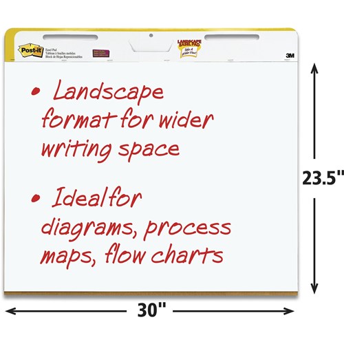 Full-size easel pads ideal for larger presentations, training seminars, large audiences and conferences. Self-stick easel sheets that stick to and remove from almost anything. 30 sheets per pad.
