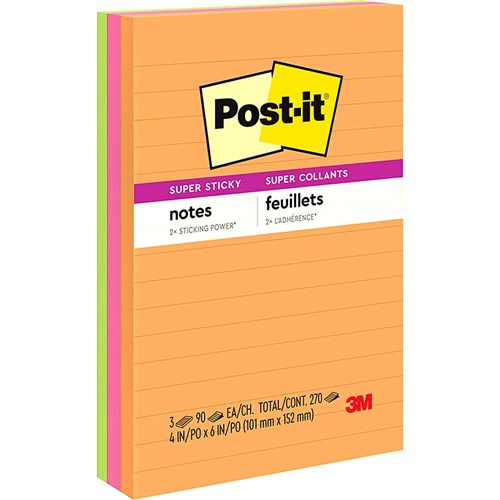 Post-It 660-3SSUC Super Sticky Notes 101mm x 152mm Energy Boost Pack Of 3