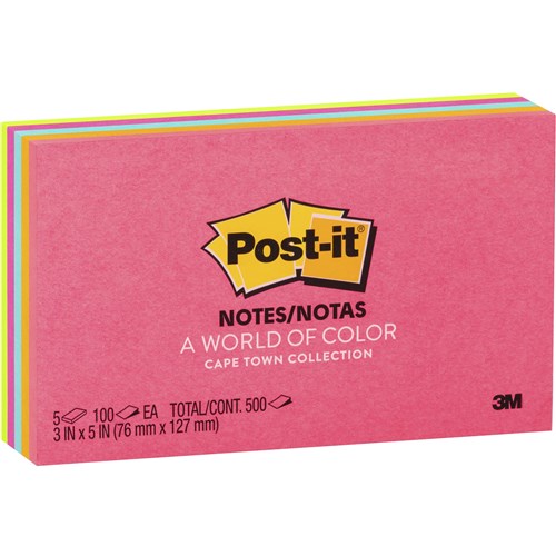 Post-It 655-5PK Notes Neon 76x127mm Capetown Assorted 100 Sheets Pack of 5