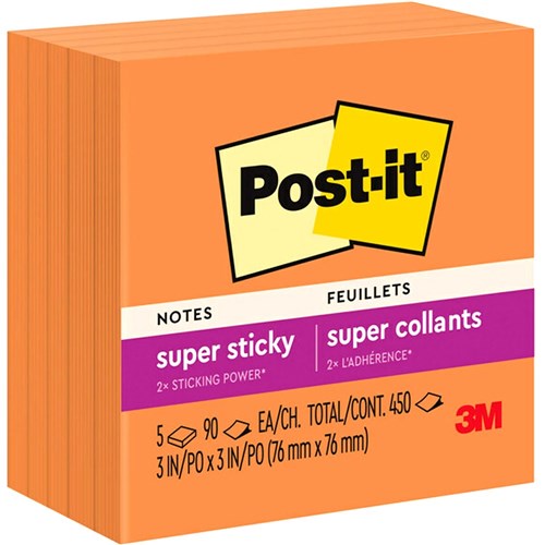 Post-It 654-5SSNO Super Sticky Notes 76x76mm Neon Orange Pack of 5