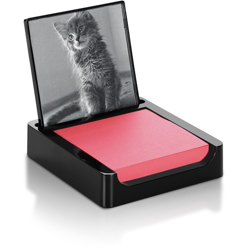 • Comes with one 76x76mm flat pad of Post-it® Notes (poppy), and has space to hold a small photo (76x76mm).
