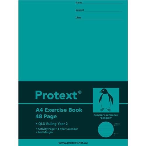 Protext Exercise Books brighten up every school day Protext means Protect the text and each book features a durable, coloured polypropylene cover that eliminates the need for book covering Packed with features including high quality bond paper and crisp line rulings, Protext is a must for every classroom QLD ruled books have red and blue lines with a red margin