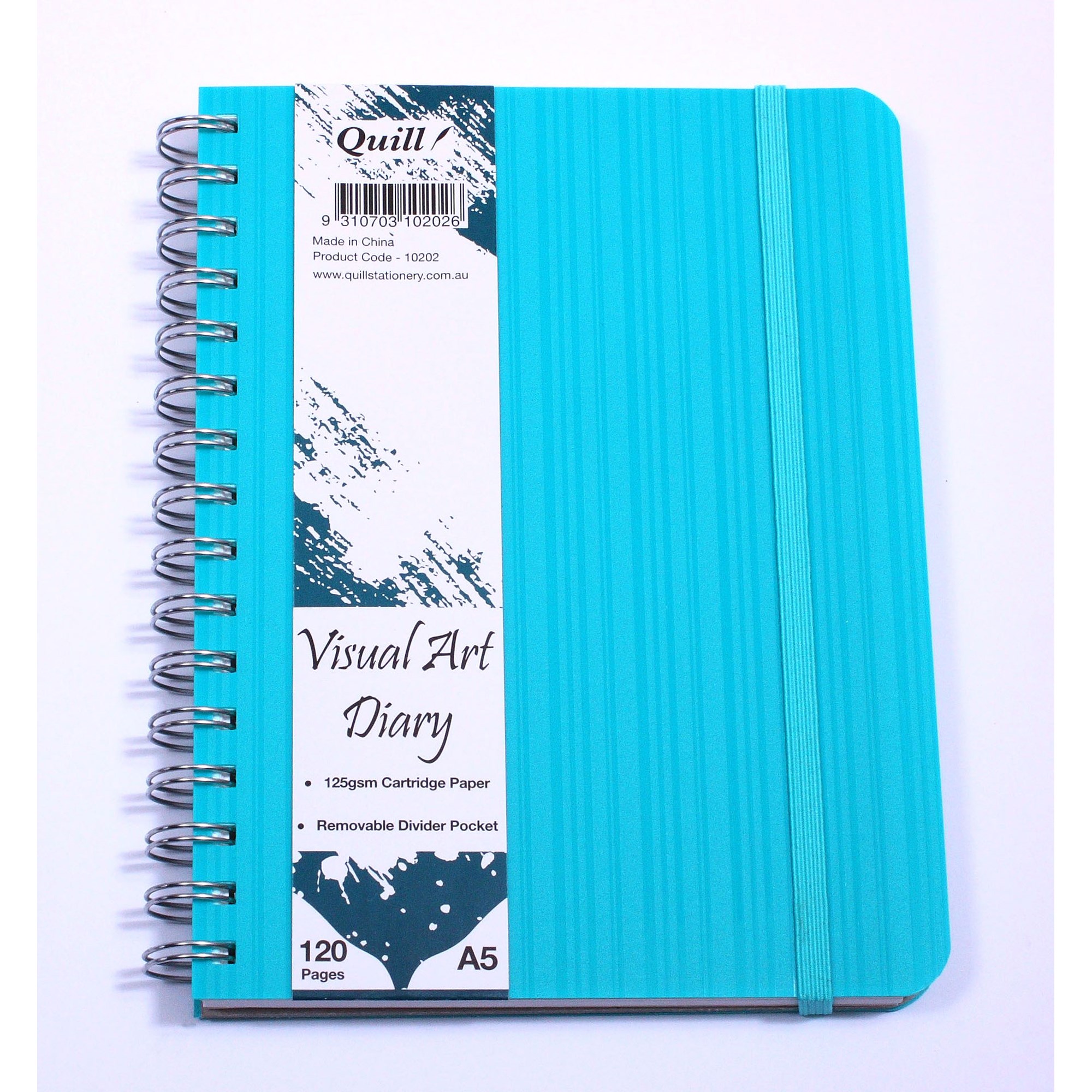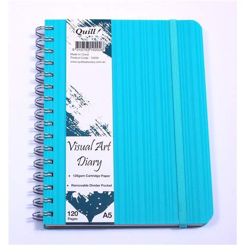 Quill Premium Visual Art Diary Spiral A5 125gsm 120 Page Side Bound Aqua