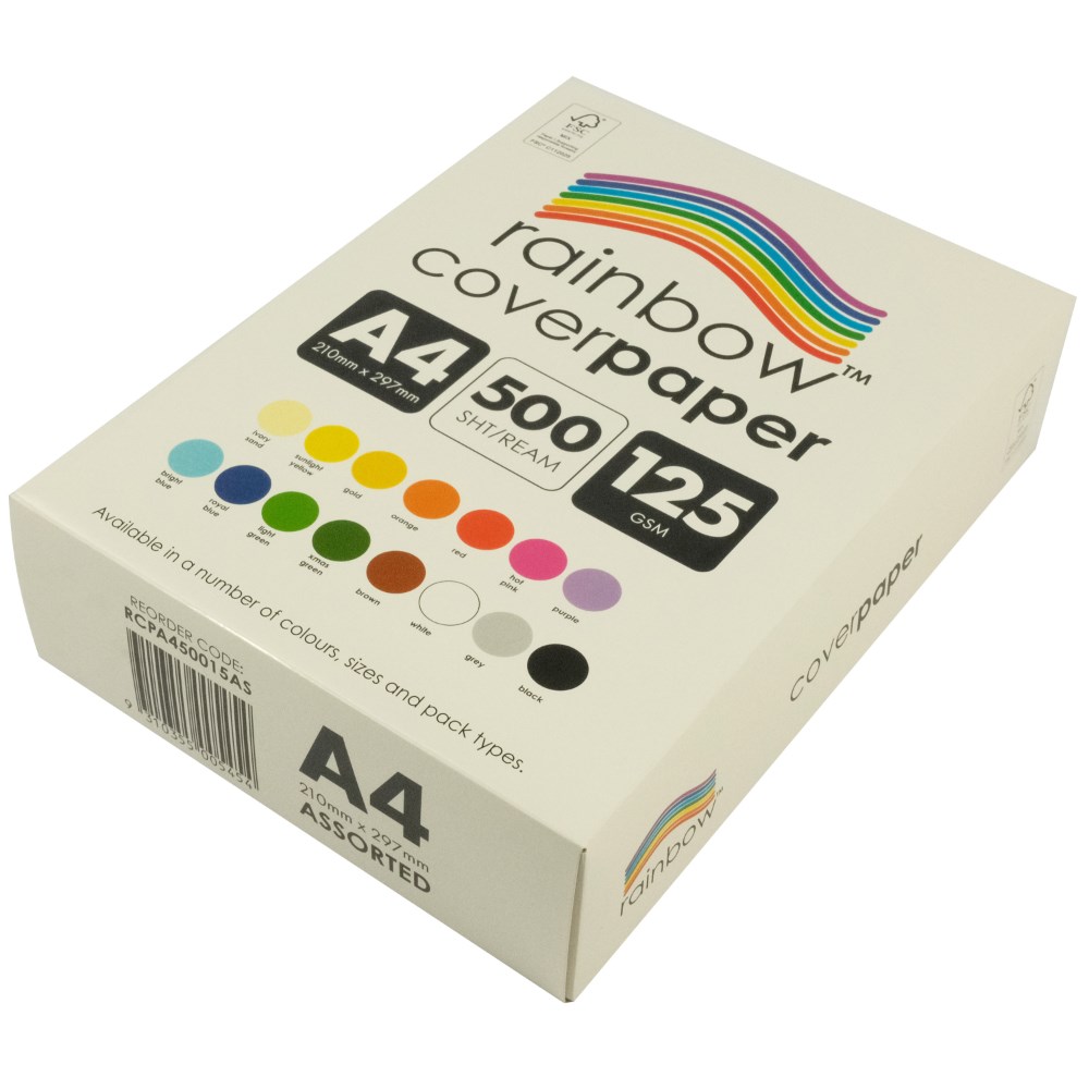Rainbow Cover Paper A4 125gsm Assorted 500 Sheets