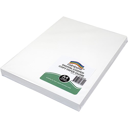 Rainbow Gloss paper is available in A3 and A4 sizes and an array of weights. Suitable for high speed and laser printers. FSC Certified. Acid Free. Also available in box of 6 packs.