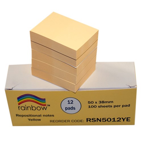 Rainbow Repositional Notes 38mm x 50mm Yellow Pack Of 12