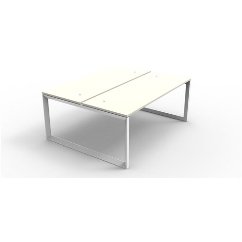 No Screen Natural White Top with Cable Entry Hole 1500mm W x 1430mm D Overall - 1500mm W x 700mm D x 730mm H Per User 60mm x 45mm Bevelled Edge Loop Leg in White P/C 30mm Cable Access Void In Between Double Sided Users Dual Cross Bar For Added Stability E1 Rated Melamine Worksurface Adjustable Levelling Feet 5 Year Manufacturer's Warranty