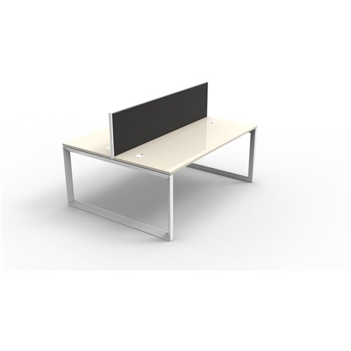 Loop Workstation White Frame 2 Person With Screen 1500Wx700D White Top With Cable Ports