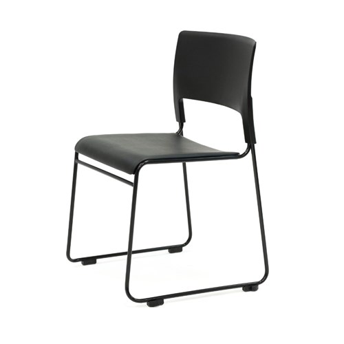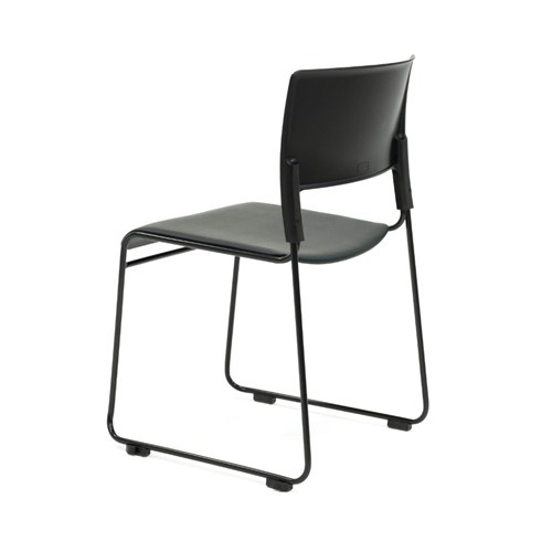 Chair Capacity: 150Kg. Composition: Black polypropylene seat and black rest. Seat Upholstered black vinyl. Solis steel sled base frame finished in black powder coat. Seat Width: 440mm. Seat Depth: 410mm. Back Height: 350mm. Nylon glides with linking feature. Heavy duty stacking chair. BIFMA Tested and Certified. 5 Year Manufacturer's Warranty. Delivery, installation and assembly charges may apply to furniture. Please enquire to confirm.