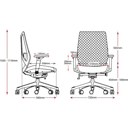 • Chair Dimensions: Seat 510W x 500D x Back 450-540H x Seat 450-540mmH.