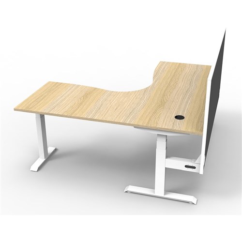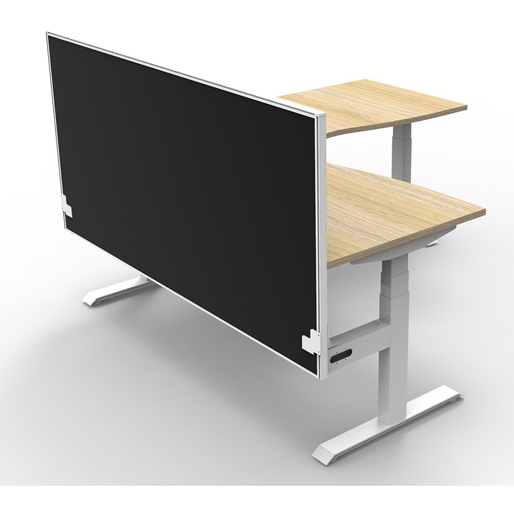 The entire Boost+ range has now been performance tested and is compliant to the AFRDI standards for general safety, strength, durability and stability in all sizes and configurations based on AS/NZS 4442:201. Unit Dimension:1500mm W x 1500mm W x 750mm D x 620mm - 1270mm H. Includes pinnable privacy screen in black fabric with matching white powder coated frame. 900mm H x 30mm T. Smooth and quiet adjustment at 38mm per second. Digital control panel with 3 pre-set positions, LED display panel, keypad safety lock and reminder alarm setting. Natural Oak coloured worksurface with 750mm depth top. 50mm D scallop cut out to rear. 140kg weight loading capacity. Dual Motor 3 stage motorised legs. Corner Workstation with Screen. 10 Year Manufacturer's Warranty. Delivery, installation and assembly charges may apply to furniture. Please enquire to confirm.