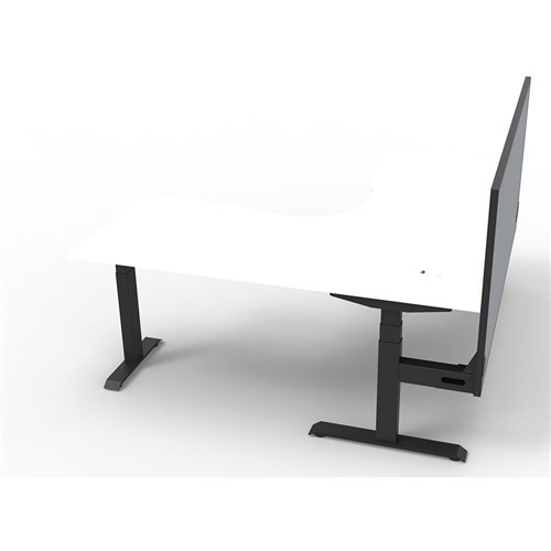 The entire Boost+ range has now been performance tested and is compliant to the AFRDI standards for general safety, strength, durability and stability in all sizes and configurations based on AS/NZS 4442:201. Unit Dimension:1800mm W x 1800mm W x 750mm D x 620mm - 1270mm H. Includes pinnable privacy screen in grey fabric with matching black powder coated frame. 900mm H x 30mm T. Smooth and quiet adjustment at 38mm per second. Digital control panel with 3 pre-set positions, LED display panel, keypad safety lock and reminder alarm setting. Natural White coloured worksurface with 750mm depth top. 50mm D scallop cut out to rear. 140kg weight loading capacity. Dual Motor 3 stage motorised legs. Corner Workstation with Screen. 10 Year Manufacturer's Warranty. Delivery, installation and assembly charges may apply to furniture. Please enquire to confirm.