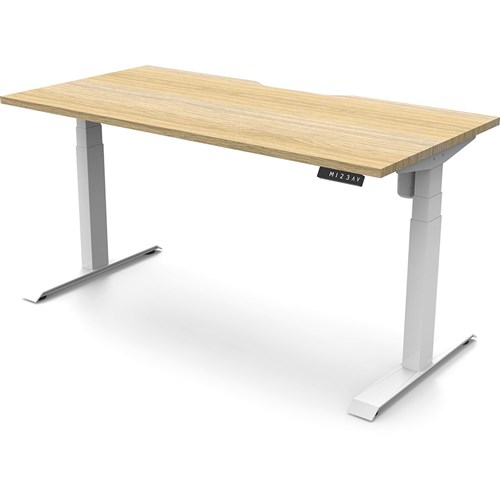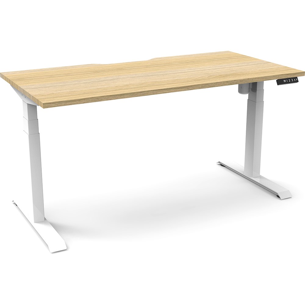 Natural Oak top with White frame. Unit Dimension: 1500mm W x 750mm D x 620-1270mm H. E0 rated top. Powdercoat base. Digital control panel with 3 pre-set positions, LED display panel, keypad safety lock & reminder alarm setting. Anti-collision technology, noise emission of less than 50DB. Lifting capacity of 80kg with a max speed of 25mm per second. 700mm wide foot size with adjustable leveling feet. 10 Year Manufacturer's Warranty. Delivery, installation and assembly charges may apply to furniture. Please enquire to confirm.