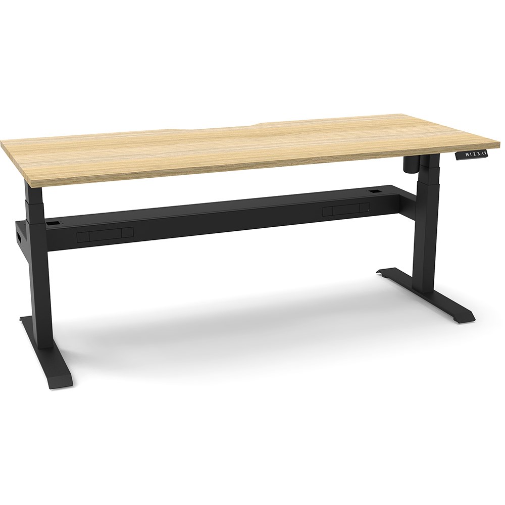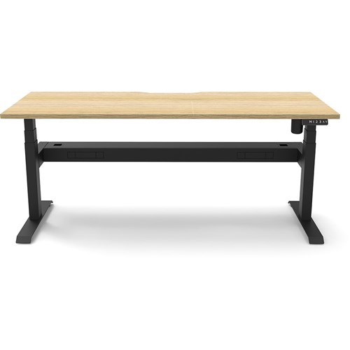 Natural Oak top with Black frame. Unit Dimension: 1200mm W x 750mm D x 620-1270mm H. Comes with cable tray for cable management. E0 rated top. Powdercoat base. Digital control panel with 3 pre-set positions, LED display panel, keypad safety lock & reminder alarm setting. Anti-collision technology, noise emission of less than 50DB. Lifting capacity of 80kg with a max speed of 25mm per second. 700mm wide foot size with adjustable leveling feet. 10 Year Manufacturer's Warranty. Delivery, installation and assembly charges may apply to furniture. Please enquire to confirm.