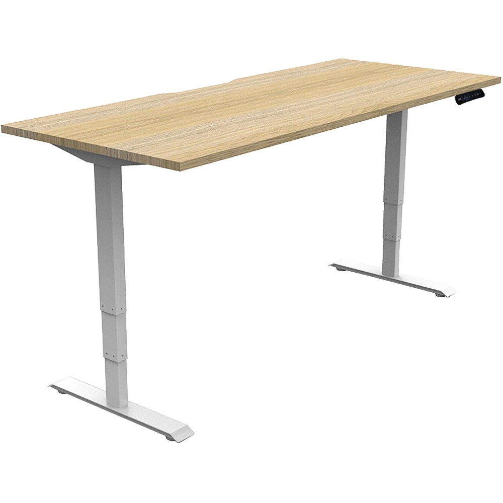 The entire Boost+ range has now been performance tested and is compliant to the AFRDI standards for general safety, strength, durability and stability in all sizes and configurations based on AS/NZS 4442:201. Boost electric, stand-alone, height adjustable workstations feature dual motors with a memory controller. with 3 pre-sets and sedentary alert for ease of use and a built-in anti-collision mechanism for safety. Unit Dimensions: 1800 W x 750 D x 620mm - 1270mmH. Natural Oak top White frame. Keypad safety lock and reminder alarm setting. Digital control panel with 3 pre-set positions and LED display panel. Anti- collision and anti-tilt technology. 120kg weight loading capacity. 10 Year Manufacturer's Warranty. Delivery, installation and assembly charges may apply to furniture. Please enquire to confirm.