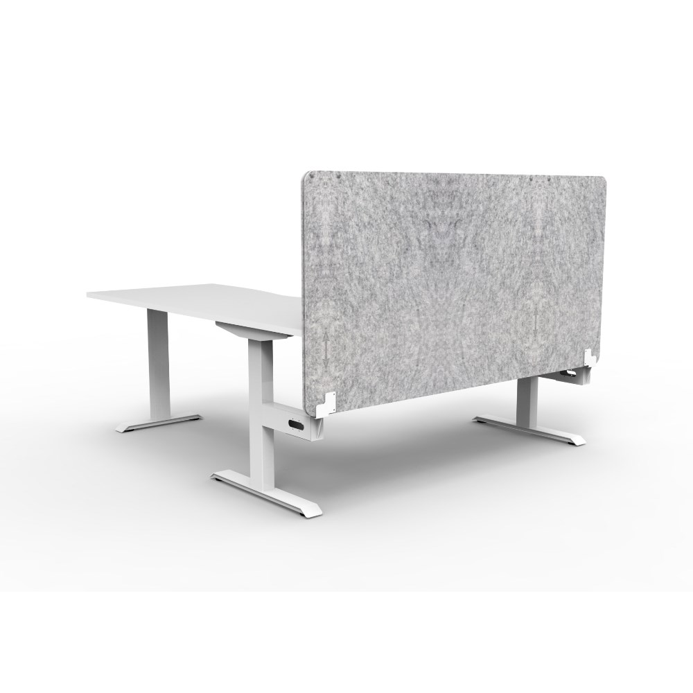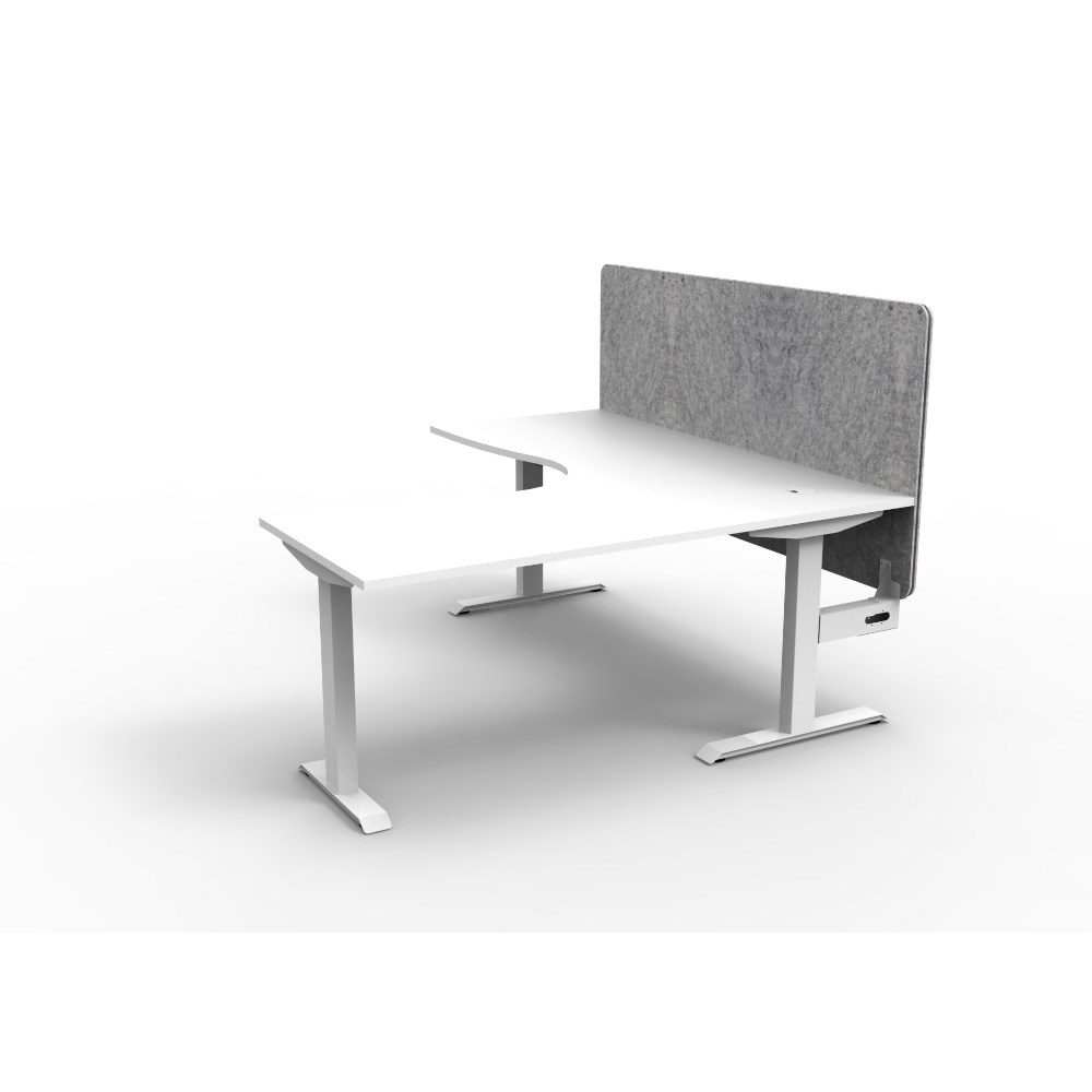 • Corner workstation with White top and White Satin frame, Grey Eco screen.