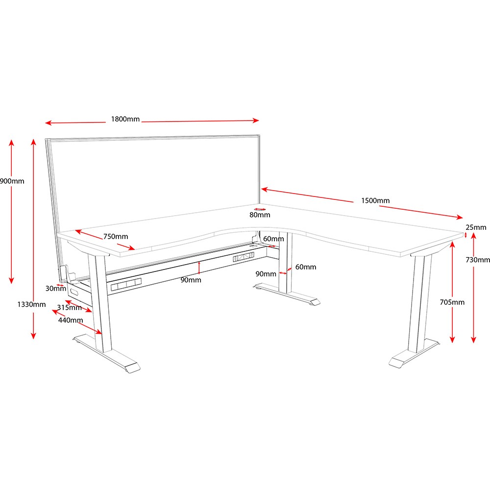 • Desk height 730mm.