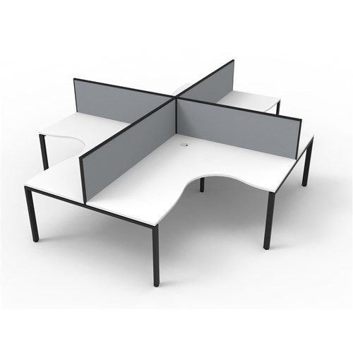 Maximise space and create an efficient working environment with Deluxe Rapid Infinity. Configure multiple workstations together to create pods of desks. Overall Including Screen: 3030mm W x 3030mmW x 780mm D x 1200mm H. Per User: 1500mm W x 1500mmW x 750mm D. Desk Height: 730mm. Includes pinnable privacy screen in grey fabric with matching black powder coated frame. 495mm H x 30mm T. Natural White worksurface with Black Profile Leg frame. 60mm x 30mm Profile Leg adds a minimalist look to each workstation. E0 Enviroboard and deeper 750mm top. Double support rail for extra strength. 1 x 80mm diameter cable entry hole. 5 Year Manufacturer's Warranty. Delivery, installation and assembly charges may apply to furniture. Please enquire to confirm.