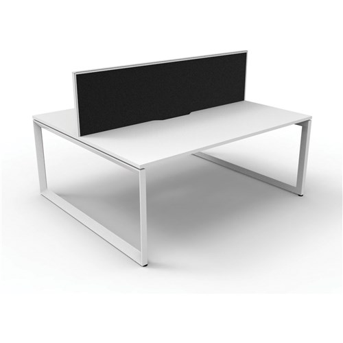 Maximise space and create an efficient working environment with Deluxe Rapid Infinity. With scallop for cable access, and a recessed leg to create full leg access in long runs of workstations. Overall Including Screen: 1500mm W x 1530mm D x 1200mm H. Per User: 1500mm W x 750mm D. Desk Height: 730mm. Includes pinnable privacy screen in black fabric with matching white powder coated frame. 495mm H x 30mm T. With 410mm W x 50mm D Scallop Cable Access. 60mm x 45mm bevelled edge powder coated Loop Leg underframe. Recessed leg to create full leg access in long runs of workstations. Scalloped top for easy wire management. Double support rail for extra strength. Adjustable levelling feet. E0 Enviroboard. 5 Year Manufacturer's Warranty. Delivery, installation and assembly charges may apply to furniture. Please enquire to confirm.
