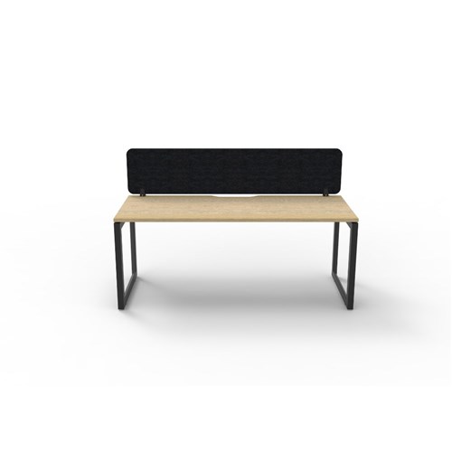 Natural Oak worksurface with rigid edging and 410mmW x 50mmD scallop cable access. Black Satin powder coat frame. Eco screen. Overall Including Screen: 1500W x 780D x 730mmH. Per User: 1500W x 750D x 730mmH. Overall Height including screen 1130mmH. Black 1500W x 400H x 27mmT Eco Panel Screen. 60mm x 45mm bevelled edge loop legs. Dual cross bar for added stability. E0 rated Enviroboard melamine worksurface. Adjustable levelling feet. AFRDI certified. 5 Year Manufacturer's Warranty. Delivery, installation and assembly charges may apply to furniture. Please enquire to confirm.