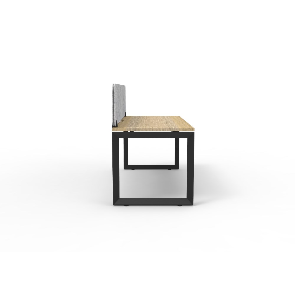 Natural Oak worksurface with rigid edging and 410mmW x 50mmD scallop cable access. Black Satin powder coat frame. Eco screen. Overall Including Screen: 1200W x 780D x 730mmH. Per User: 1200W x 750D x 730mmH. Overall Height including screen 1130mmH. Marble Grey 1200W x 400H x 27mmT Eco Panel Screen. 60mm x 45mm bevelled edge loop legs. Dual cross bar for added stability. E0 rated Enviroboard melamine worksurface. Adjustable levelling feet. AFRDI certified. 5 Year Manufacturer's Warranty. Delivery, installation and assembly charges may apply to furniture. Please enquire to confirm.