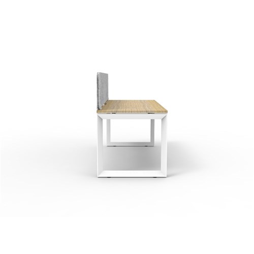 Natural Oak worksurface with rigid edging and 410mmW x 50mmD scallop cable access. White Satin powder coat frame. Eco screen. Overall Including Screen: 1800W x 780D x 730mmH. Per User: 1800W x 750D x 730mmH. Overall Height including screen 1130mmH. Marble Grey 1800W x 400H x 27mmT Eco Panel Screen. 60mm x 45mm bevelled edge loop legs. Dual cross bar for added stability. E0 rated Enviroboard melamine worksurface. Adjustable levelling feet. AFRDI certified. 5 Year Manufacturer's Warranty. Delivery, installation and assembly charges may apply to furniture. Please enquire to confirm.