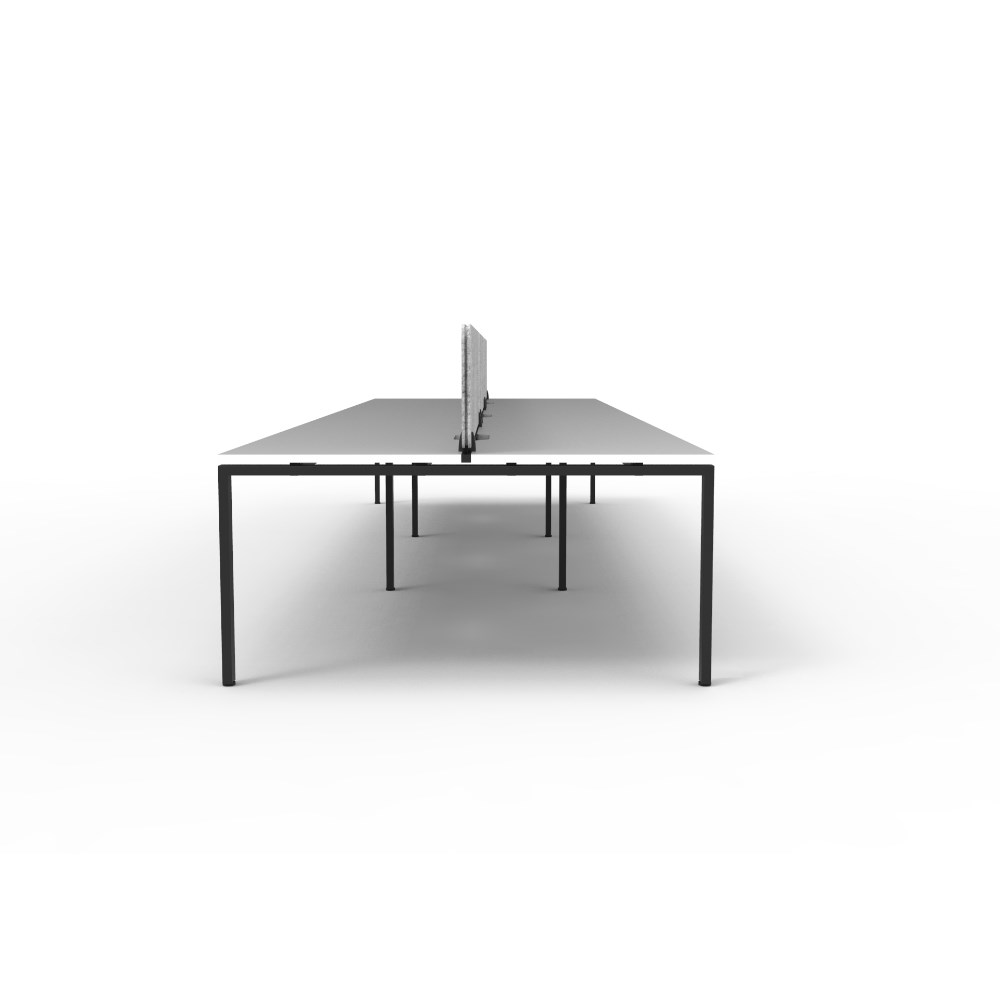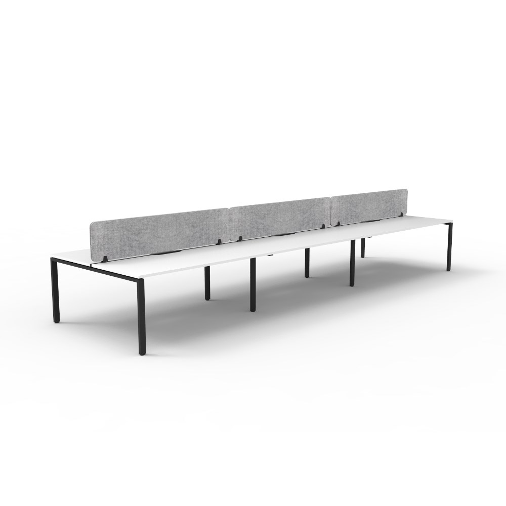 • 6 person double sided workstation with White top and Black Satin frame, Grey Eco screen.