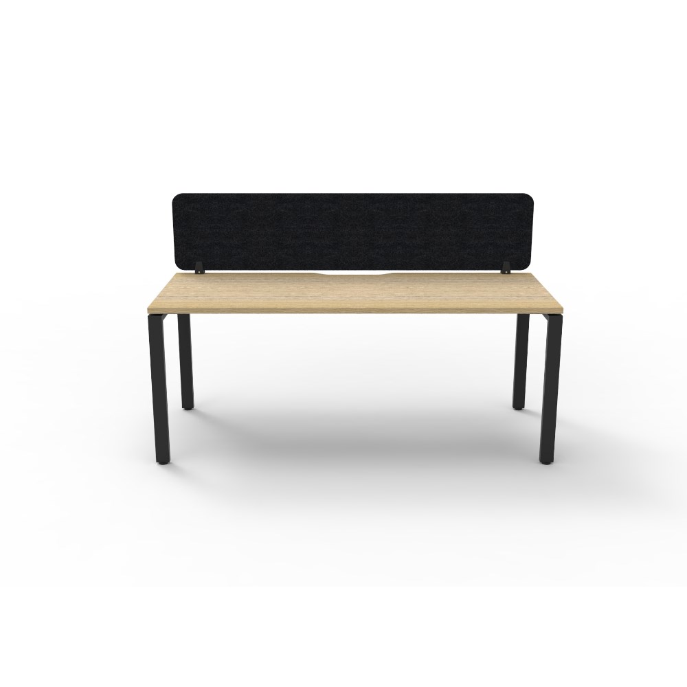 Natural Oak worksurface with rigid edging and 410mmW x 50mmD scallop cable access. Black Satin powder coat frame. Eco screen. Dimensions: 1200W x 780D x 730mmH. Per User: 1200W x 750D x 730mmH. Overall Height including screen 1130mmH. Black 1200W x 400H x 27mmT Eco Panel Screen. 60mm x 30mm profile legs. Dual cross bar for added stability. E0 enviroboard melamine worksurface. Adjustable levelling feet. AFRDI Certified. 5 Year Manufacturer's Warranty. Delivery, installation and assembly charges may apply to furniture. Please enquire to confirm.