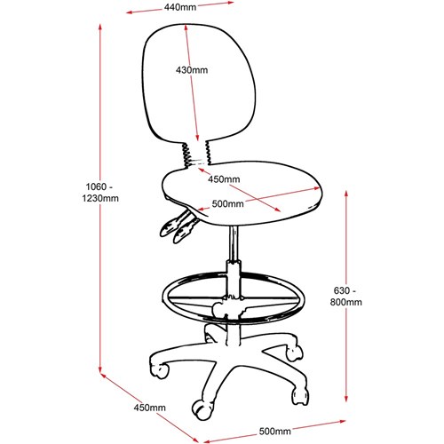 • Chair Dimensions: Seat 500W x 450D x Back 430H x Seat 630-800mmH.