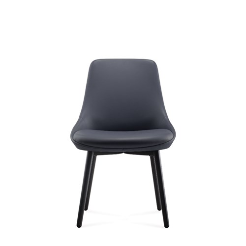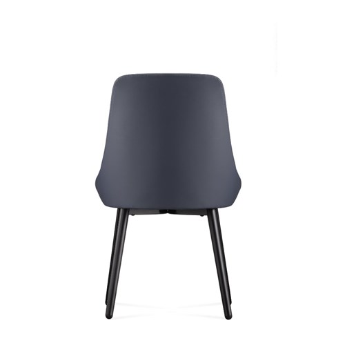 Eros breakout room or dining chair. Robust steel 4 leg frame finished in black powder coat French Navy PU leather seat. Dimensions: 530W x 580D x 830H. GreenGuard Gold certified. 5 Year Manufacturer's Warranty. Delivery, installation and assembly charges may apply to furniture. Please enquire to confirm.