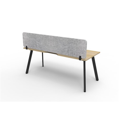 Natural Oak worksurface with rigid edging and 410mmW x 50mmD scallop cable access. Black Satin powder coat frame. Eco screen. Dimensions: 1800W x 780D x 730mmH. Overall Height including screen 1130mmH. Marble Grey 1800W x 400H x 27mmT Eco panel screen with 4 x 50mm radius corners. E0 rated 25mmT Enviroboard melamine top. 60mm x 30mm splayed legs. Dual cross bar construction for added stability. Adjustable levelling feet for stability on uneven floors. AFRDI certified. 5 Year Manufacturer?s Warranty. Delivery, installation and assembly charges may apply. Please enquire to confirm.