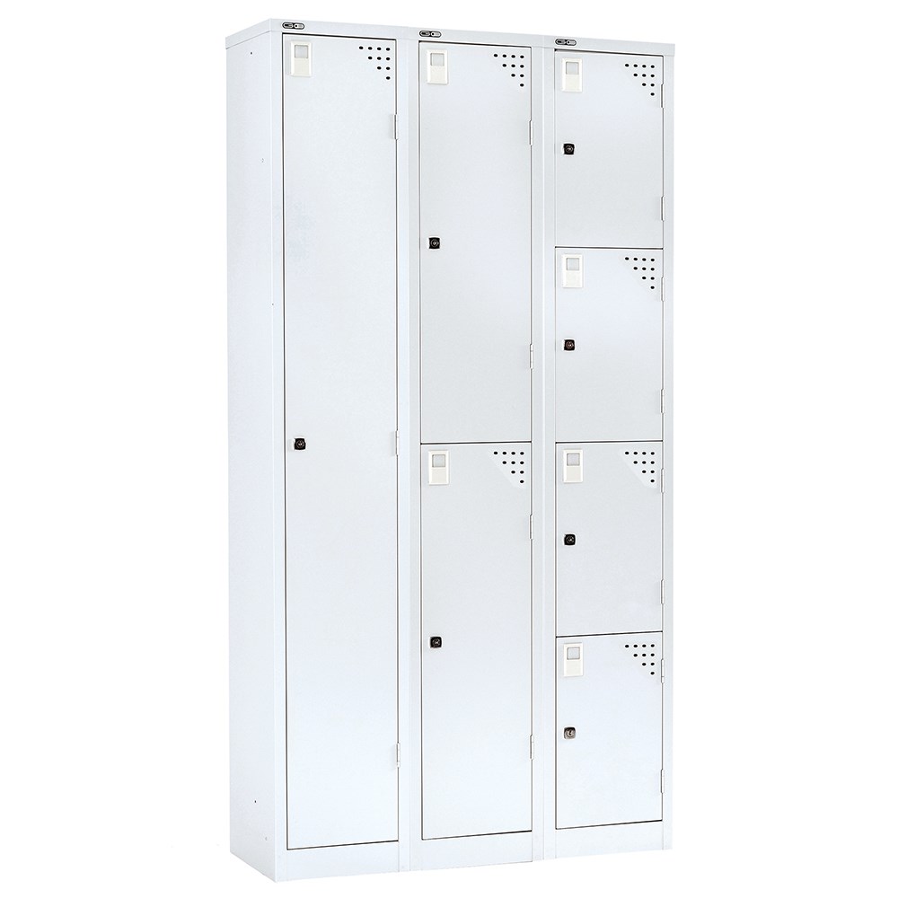 Riveted construction for extra strength. Full length stiffeners fitted to every door for additional security. Ventilation on door. The 4 door locker maximises valuable space. 10 Year Manufacturer's Warranty. Delivery, installation and assembly charges may apply to furniture. Please enquire to confirm.